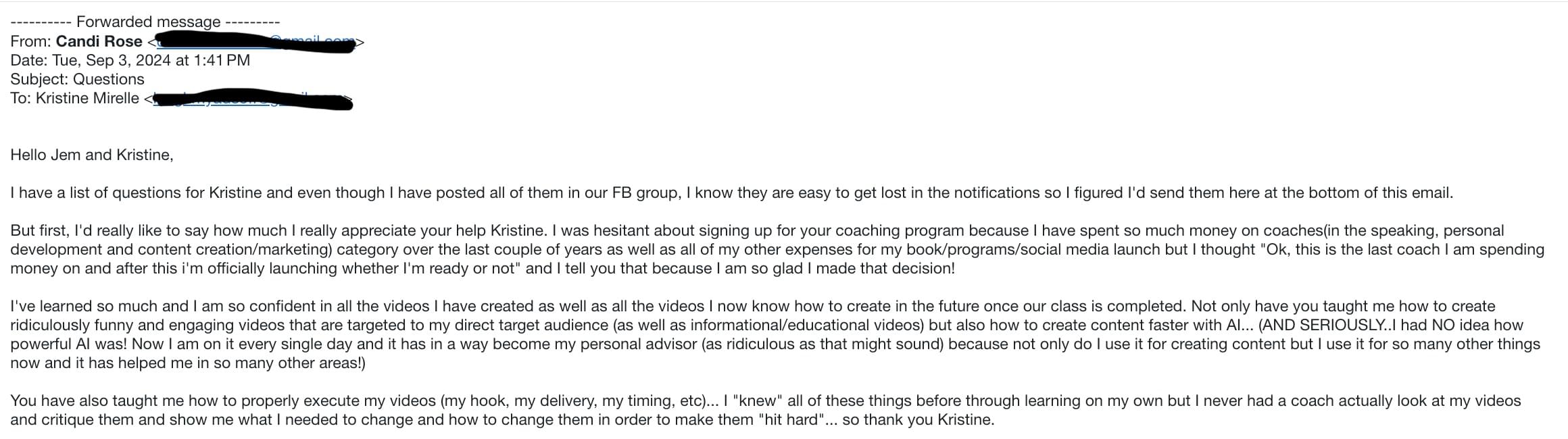 She has received multiple 2-Comma Club awards for driving millions of dollars of sales in her businesses through funny ads including info-products, e-commerce products and more. Her team also creates ads for 8,9 and 10 figure businesses.